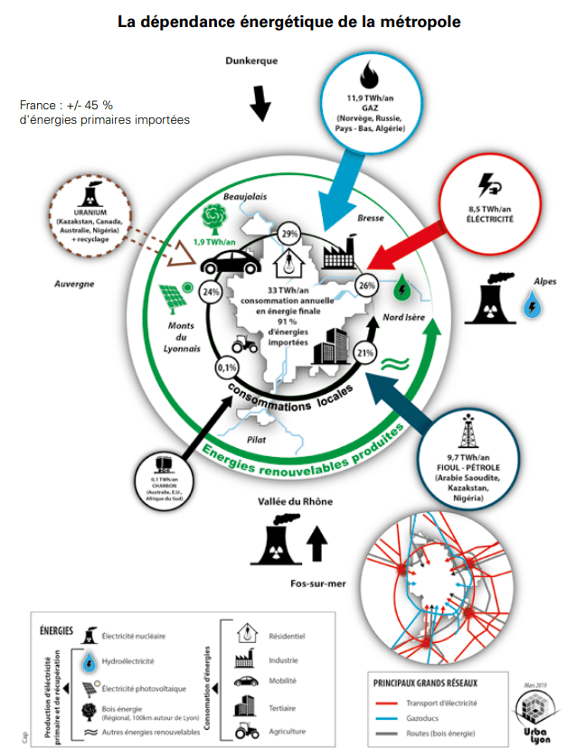 Avant de rentrer dans les détails économiques et d’emploi de l’agglomération lyonnaise, il me parait essentiel de faire une halte sur le sujet de l’approvisionnement énergétique et matériel du territoire. En effet, sans énergie ou apports de matière première, il est difficile d’imaginer une quelconque activité productive et c’est en ce sens qu’une analyse de la résilience et de l’autonomie parait incontournable.