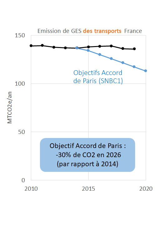 I do not think it is useful to go back to the trajectory defined by the National Low Carbon Strategy, of the order of -30% by 2026. However, it may be useful to point out that this reduction was imagined at the end of 2015 compared to 2014, but GHG emissions from the transport sector have almost stagnated until 2019… Similar to other areas, it is always regrettable that a transition is not started as soon as possible, as this forces us to accelerate with potentially more difficult support and social adherence.