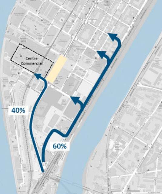 - Réorganisation de la circulation automobile en mode « peigne » avec comme axe principal le quai Perrache