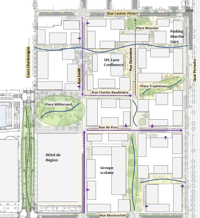 La conception d’espaces publics de qualité est une orientation forte, que je porte au quotidien, partout dans la Ville de Lyon. La question du partage de l’espace public, de sa conception inclusive et de sa végétalisation massive n’ont jamais été autant d’actualité. De nombreux nouveaux espaces publics verront le jour dans le quartier. Il s’agira par exemple de deux grandes places de 2500 m², fortement arborées : l’une est la place Truphémus, l’autre la place Hubert Mounier qui sera aménagée devant l’entrée du Marché Gare en hommage aux BD de l’auteur.