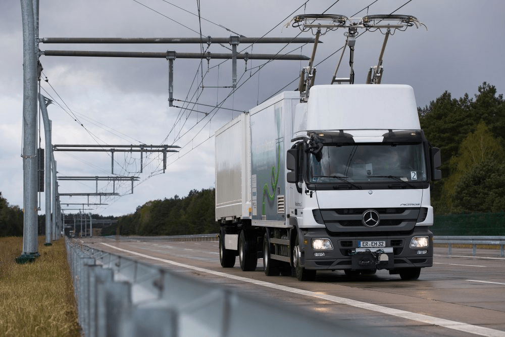 Enfin, concernant la route, des projets de trolley-camions émergent afin de significativement réduire le besoin en carburant, qu’il soit fossile, bio ou électrique via hydrogène. Le principe est simple : à l’instar des trolleybus bien connus à Lyon, et d’autres villes du monde entier, les remorques seraient tirées par de nouveaux engins hybrides, permettant de se connecter sur l’autoroute à un système de ligne aérienne de contact, alimentant leurs moteurs électriques. Cela permet dans certains territoires de maintenir l’avantage compétitif du poids-lourd, capable de faire du « porte-à-porte », tout en réduisant la consommation énergétique.