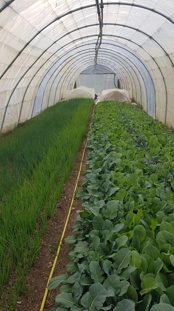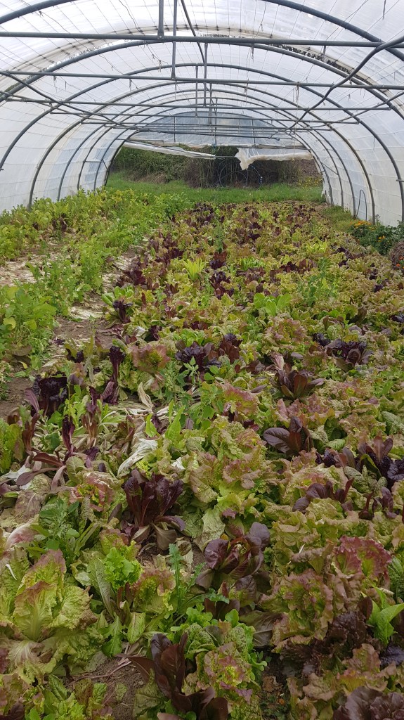 Nous avons profité de notre passage dans la région pour aller voir la ferme bio de Renaud Daumas, conseiller régional écologiste. Sur 6 ha, il y cultive avec ses co-gérants des légumes, des arbres fruitiers, des plantes aromatiques. Il fonctionne avec de la traction animale et est autonome en terreau grâce au fumier de cheval. Il applique également le principe de l’engrais vert, c’est-à-dire une rotation d’une culture cible avec une culture riche et diversifiée ayant pour objectif d’être incorporée par rotavator dans le sol pour le nourrir. Enfin, la conservation temporaire de ces légumes récoltés ne nécessite pas de chambre froide, appliquant le principe du silo en tranchée : on conserve certains types de légumes dans la terre, en régulant l’humidité et en l’entourant de fougères ou autres plantes.
